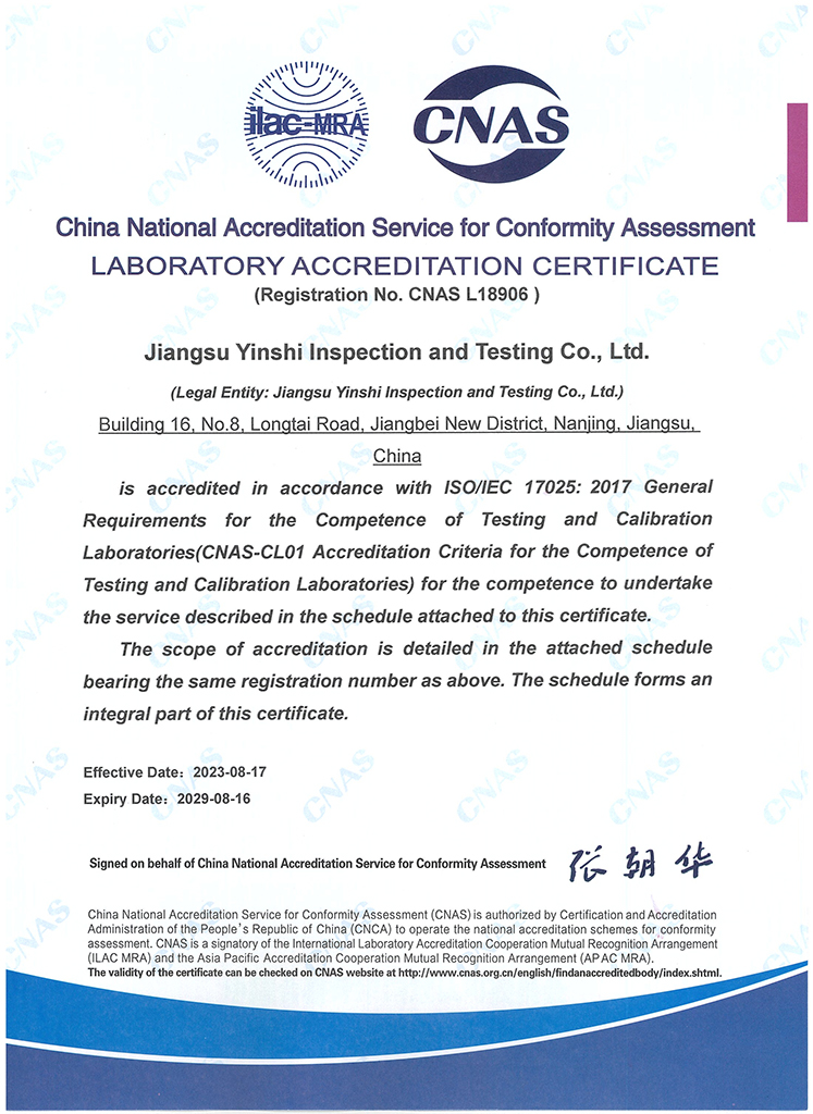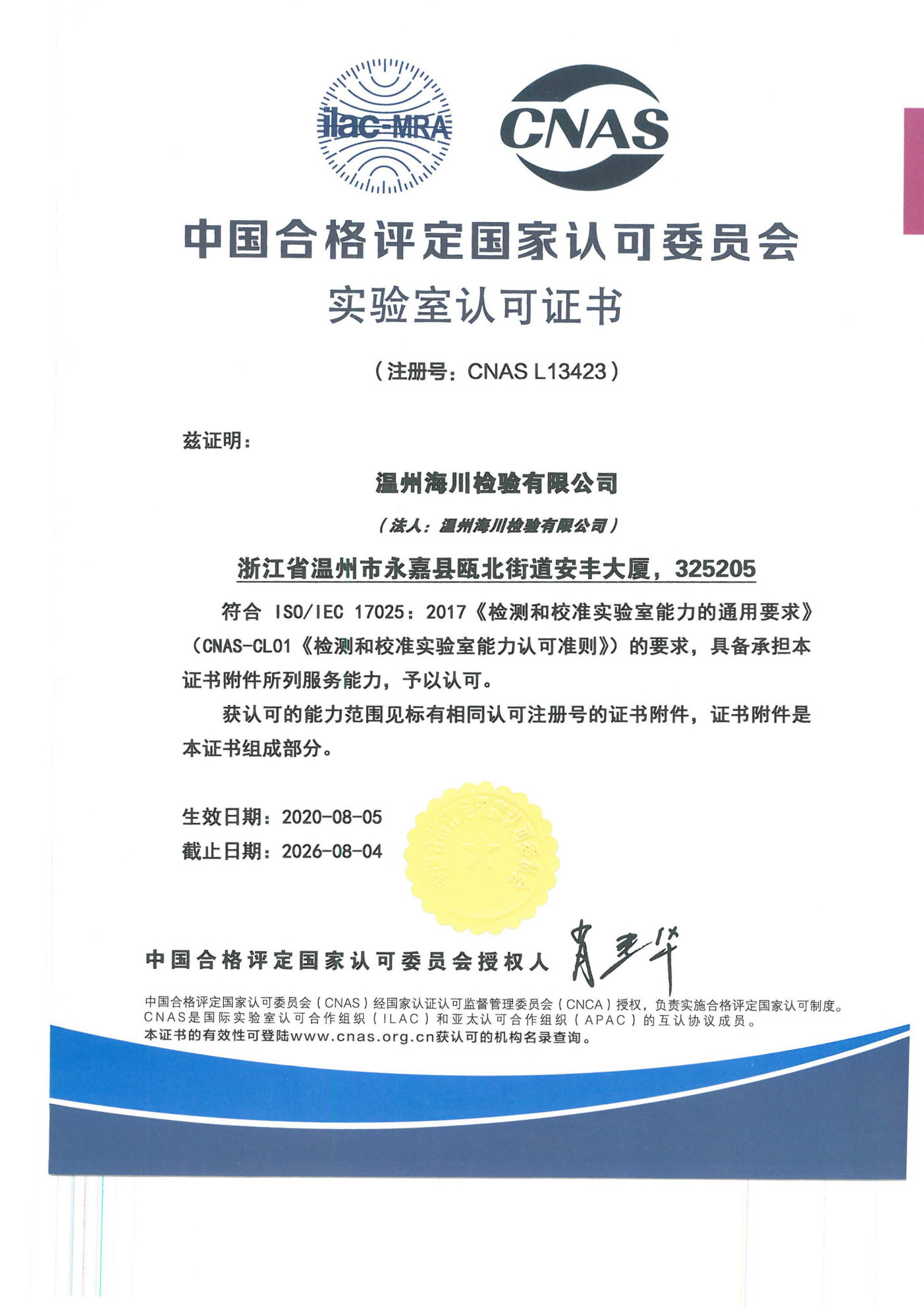具有CMA和CNAS资质,特种设备检 验检测核准证书