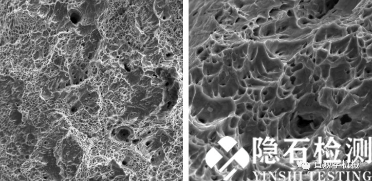 韧窝的尺寸和深度与材料的延展性有关,而韧窝的形状也同受到的破坏应力有关。因此,对于断口面上吻合部位的韧窝几何形状、尺寸和深度进行分析,就可以确定断裂时所在部位的应力状态和裂纹扩展的方向,并可对材料的延展性进行评价。