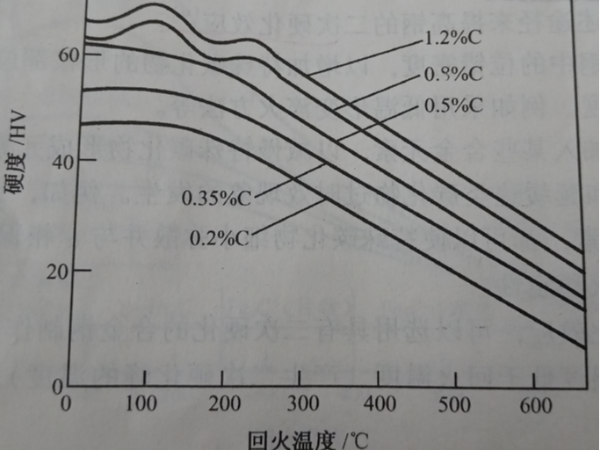 各种碳钢在回火时硬度和强度的变化基本相似,总的趋势是:随着回火温度升高,硬度和强度降低,如图1所示。