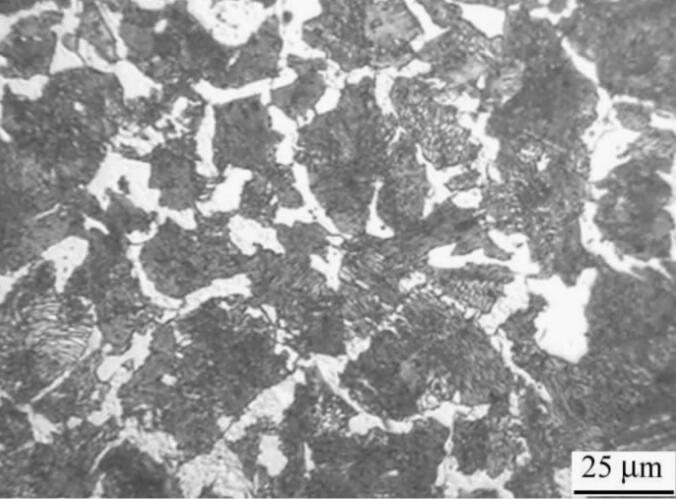 如果白色网状组织比较粗大,粗细不均匀,还能清除看到网状组织中存在黑色细而均匀的线条(即晶界),则可以判断该组织为铁素体,材料为亚共析钢。