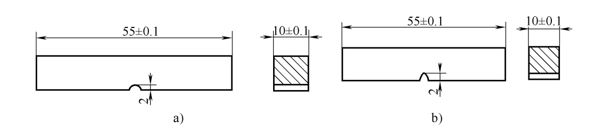 夏比U型缺口试样和夏比V型缺口试样的形状和尺寸如图所示。